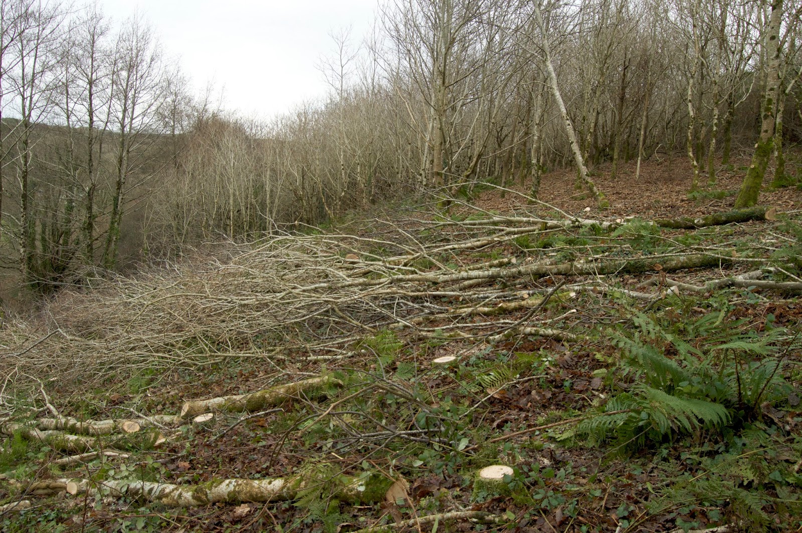 Work has not yet finished on the coppice this year. The next thing I need to do is make some tracks for a horse to pull the logs into the field. Until I know exactly what to do with the wood I need to keep the trunks as long as is reasonably possible. The maxim is ‘Keep it as long as you can for as long as you can’. If I cut it all into short lengths I might miss up the opportunity of selling it as building materials. A friend knows someone with a horse trained to extract wood, so hopefully I will be able to borrow it for a day.