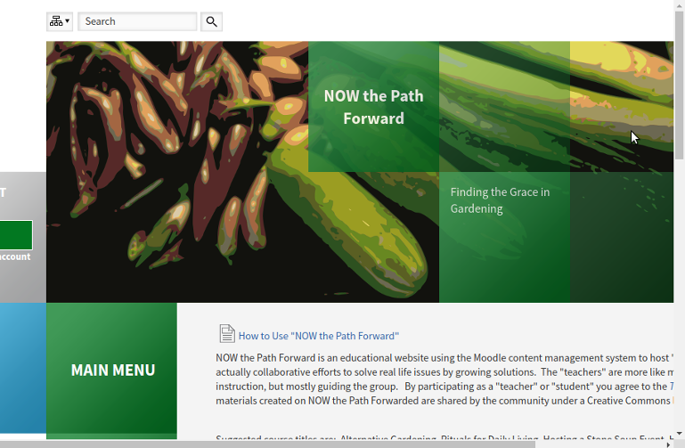 NOW the Path Forward is an educational website based on Moodle (http://moodle.org). It’s purpose is to grow solutions under an open source umbrella and use the educational tools such as wikis for collaboration. In this scenario, the teachers are actually teacher/moderators and the students are student/collaborators. Do not think of the courses in a traditional sense, but rather as work space. Participants can contribute at any level they prefer. Lurking is allowed.