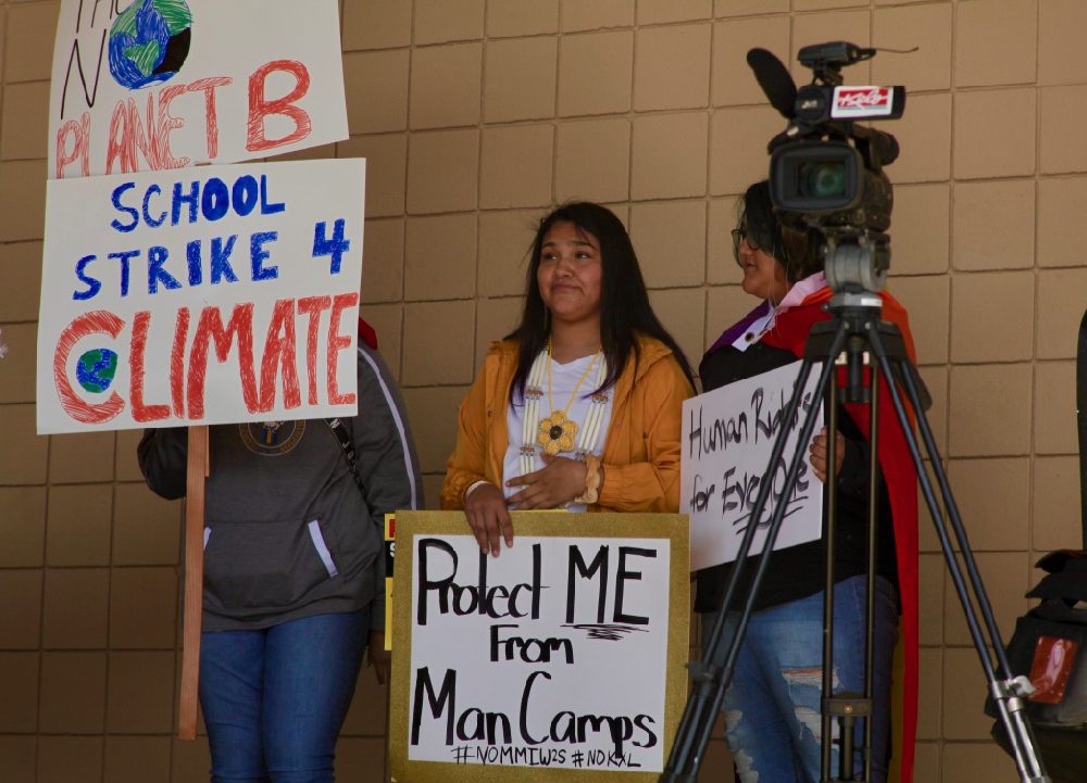 Teaser photo credit: Lakota youth activist Tokata Iron Eyes, left, invited Greta Thunberg, center, on a tour of the Dakotas. (Tatyana Novikova photo)